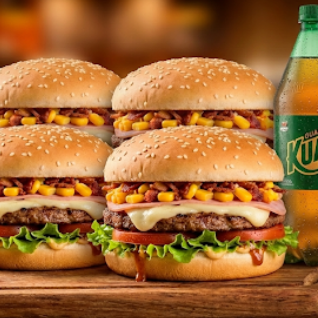 4 Burger Trem + 1 Kuat 2L.