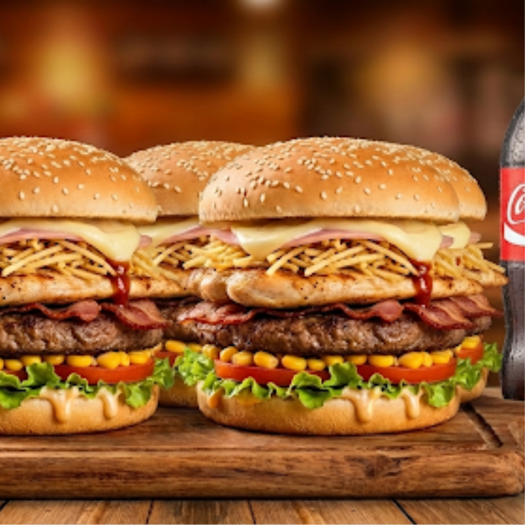 3 Burgers Trem + 1 Fanta 1L.